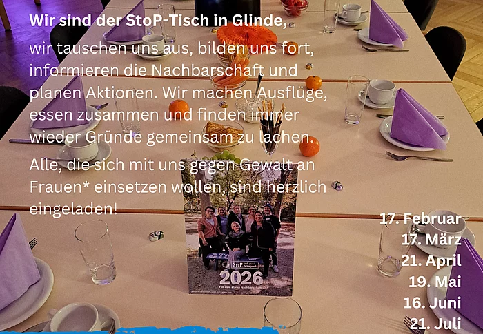 StoP Glinde - Stadt ohne Partnergewalt lädt zum monatlichen StoP-Tisch.