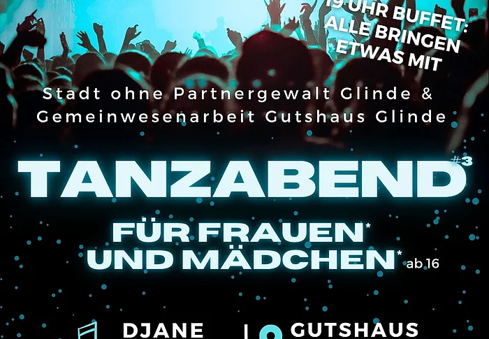 StoP Glinde und Gemeinwesenarbeit Gutshaus Glinde laden zum Frauentanzabend ins Gutshaus Glinde ein.