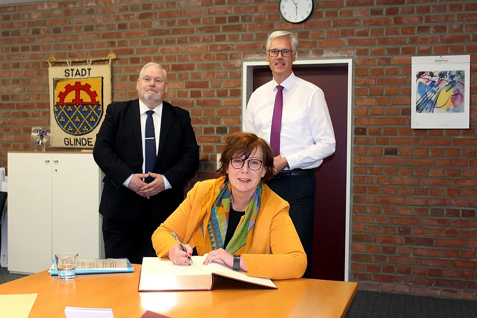 Ministerin unterschreibt im Goldenen Buch der Stadt Glinde