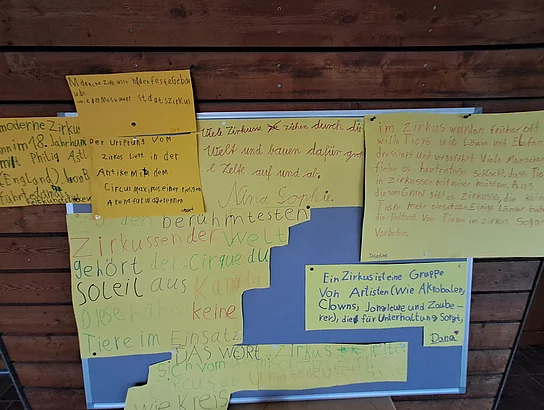 Los ging es in der Besprechungsrunde, wo einige Kinder von ihrem Zirkusbesuch erzählt haben. Schnell war großes Interesse da und es wurde fleißig diskutiert. Ein Thema war zum Beispiel das Thema Tiere im Zirkus; Ist es eigentlich gut, wenn Tiere im Zirkus auftreten oder nicht? Es wurde viel recherchiert und es wurden Plakate mit den Kindern erstellt. Das Interesse jedoch war ungebremst und so kam die Idee man könne doch selbst eine Zirkusaufführung planen.