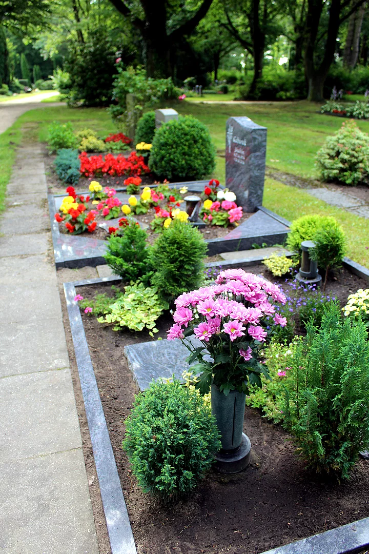 Zudem gibt es noch Wahlgräber, die ausschließlich für Urnen gedacht sind: Urnenwahlgräber haben eine Fläche von einem Quadratmeter, den es zu bepflanzen und pflegen gilt. Die Gestaltung ist dabei Ihnen überlassen. Auf einem Grab können insgesamt vier Urnen beigesetzt werden. Die Laufzeit beträgt 25 Jahre und kann verlängert werden.
