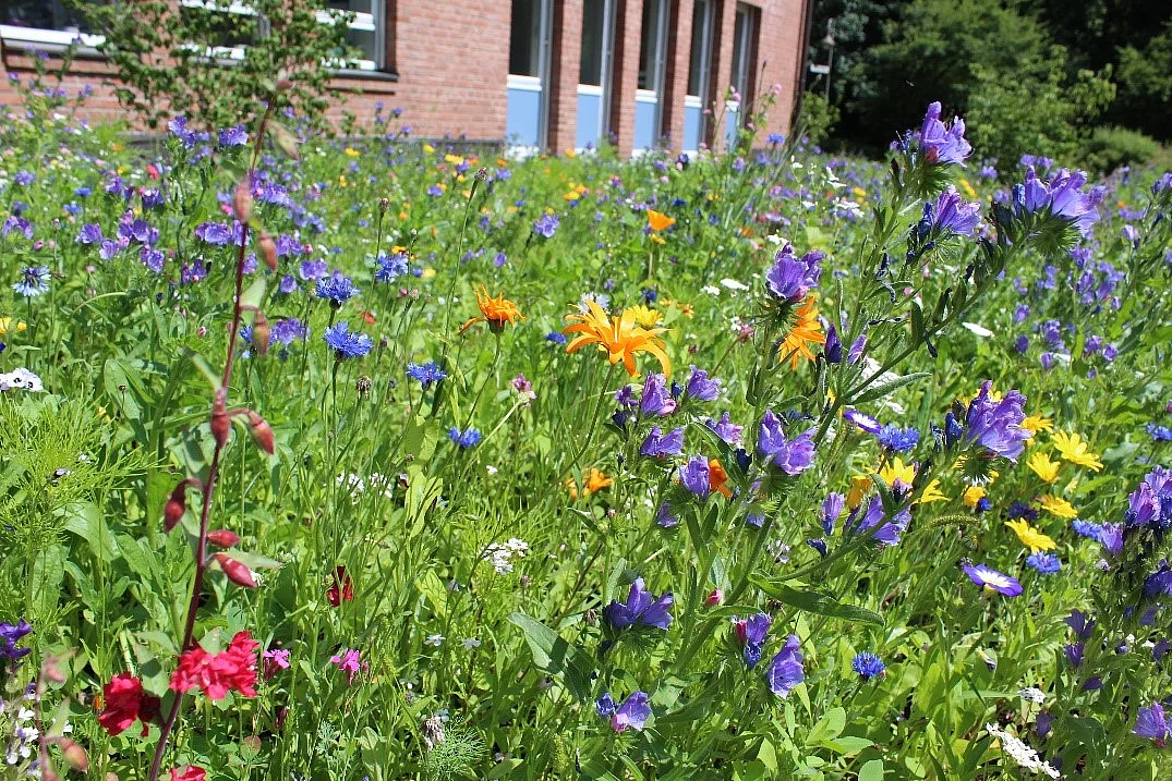 Gestalten Sie Ihren Garten oder Vorgarten einfach wie die LBO es vorgibt. Die Flächen, die nicht durch Garage, Carport, Wege oder Gartenschuppen versiegelt werden, belassen Sie naturnah. Entweder Sie pflegen einen Rasen oder schaffen sich Pflanzen- und Blumenbeete. Noch ökologisch wertvoller sind sogenannte naturnahe oder wilde Gärten. Das bedeutet nicht, dass das Unkraut ins Unermessliche wächst. Nein, vielmehr schaffen Sie natürliche Lebensräume für die heimische Tier- und Pflanzenwelt. Eine Blühwiese mit Wildblumen zum Beispiel. Hierfür stattet die Stadt Glinde Sie gerne mit Samentütchen aus.